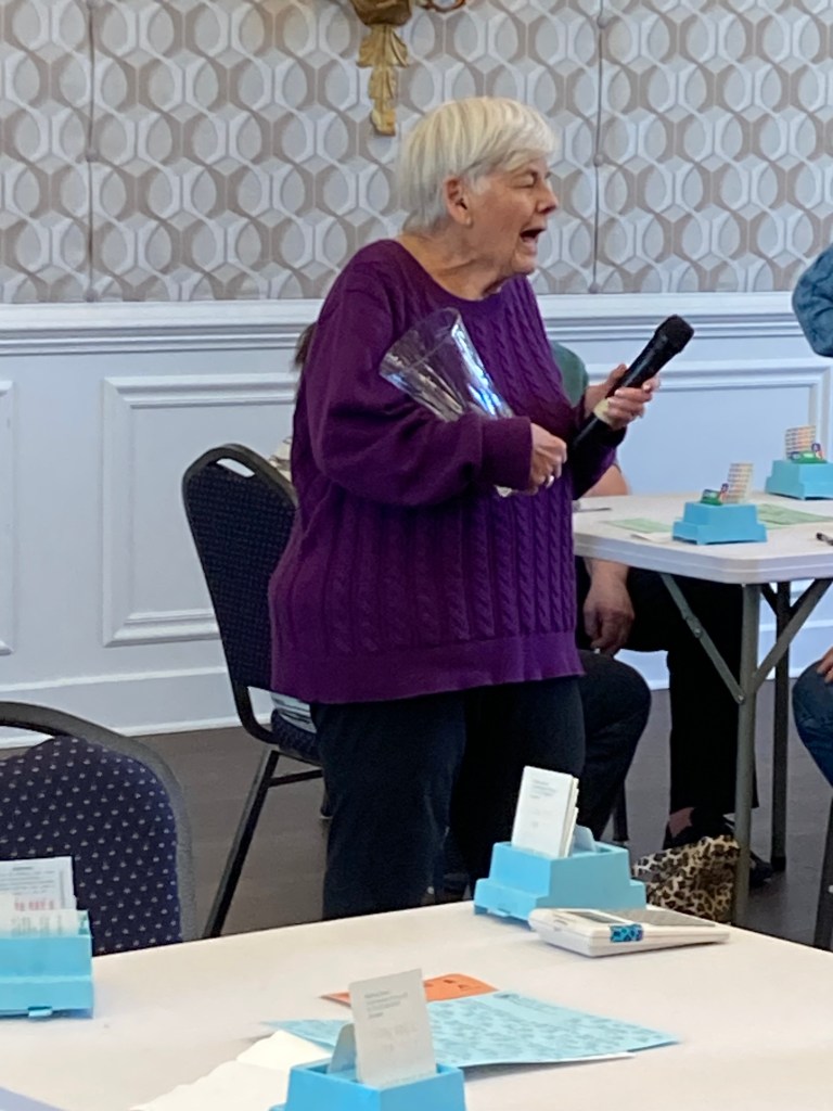 The Jeff Feldman trophy was presented to Sandy DeMartino for earning the most masterpoints in last fall’s Sectional. Sandy accepted with a very moving speech about the late Jeff Feldman, for whom the trophy is named.